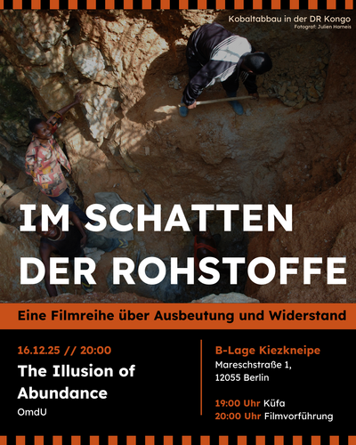 Wir laden euch herzlich ins Kino Moviemento zu einer weiteren Vorführung im Rahmen unserer Kinoreihe "Im Schatten der Rohstoffe: Eine Filmreihe über Ausbeutung und Widerstand" ein!